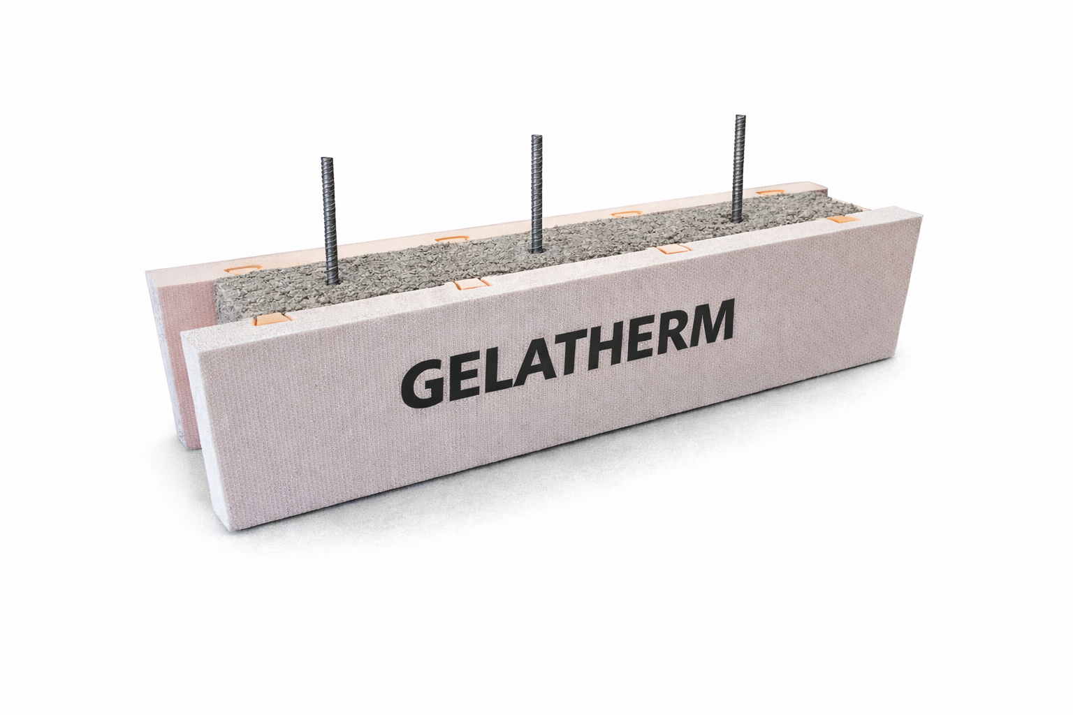 A Gelatherm egy saját fejlesztésű, hőszigetelt bennmaradó zsaluzati homlokzati falazati elem, amely családi házak teherhordó homlokzati falazatához készült.