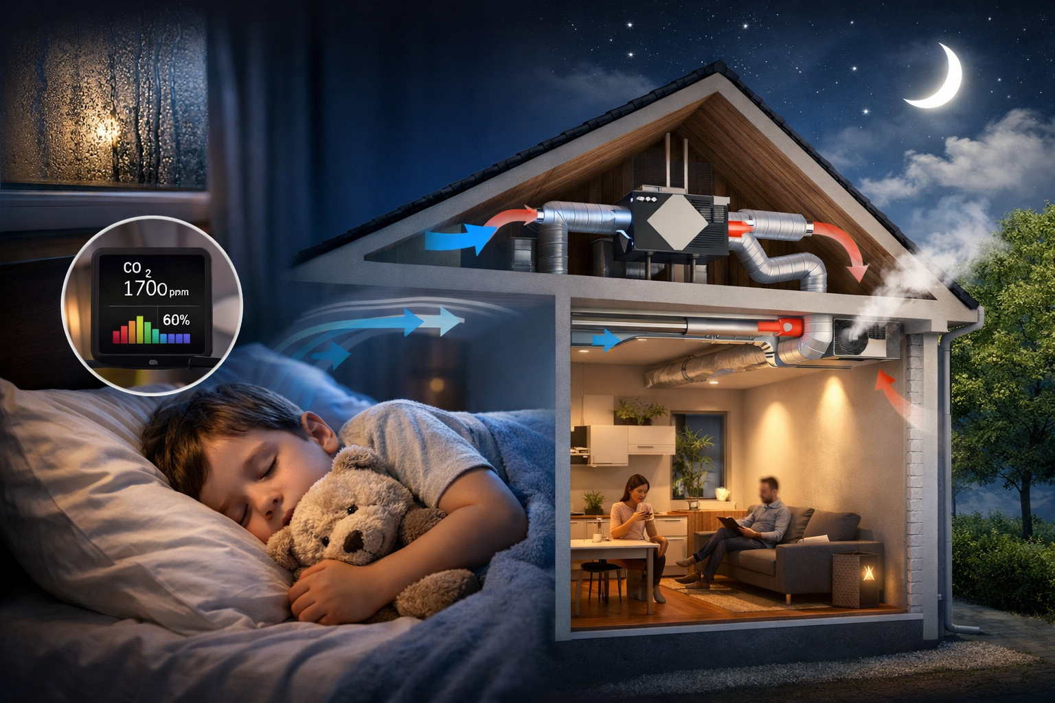 Mosás, főzés vagy fürdés során, illetve lélegzéssel is rengeteg elhasznált levegőt és párát termelünk. A megfelelő légcsere eltávolítja a nedvességet, a kellemetlen szagokat, illetve a biológiai és kémiai szennyező anyagokat (vírusok, kórokozók, stb.), és friss, tiszta levegővel helyettesíti az állott levegőt. Egészségünk és a költséghatékony fűtés-hűtés szempontjából is elengedhetetlenül fontos, hogy a külső levegő optimális arányban és módon cserélődjön ki a belső levegővel.